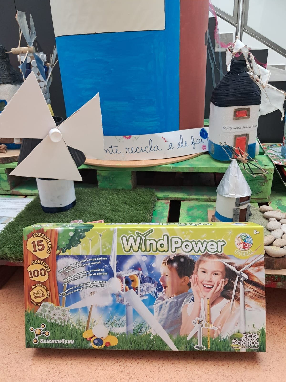 No âmbito das comemorações do aniversário do Agrupamento de Escolas de Alcabideche, celebrado a 10 de maio, a Direção do Agrupamento desafiou todos os seus alunos a participar numa exposição conjunta. O objetivo era o de conseguir construir um moinho, usando materiais recicláveis. Este projeto promoveu valores fundamentais que defendemos, como a criatividade, a sustentabilidade e o trabalho colaborativo, através da expressão artística e do reaproveitamento de materiais.