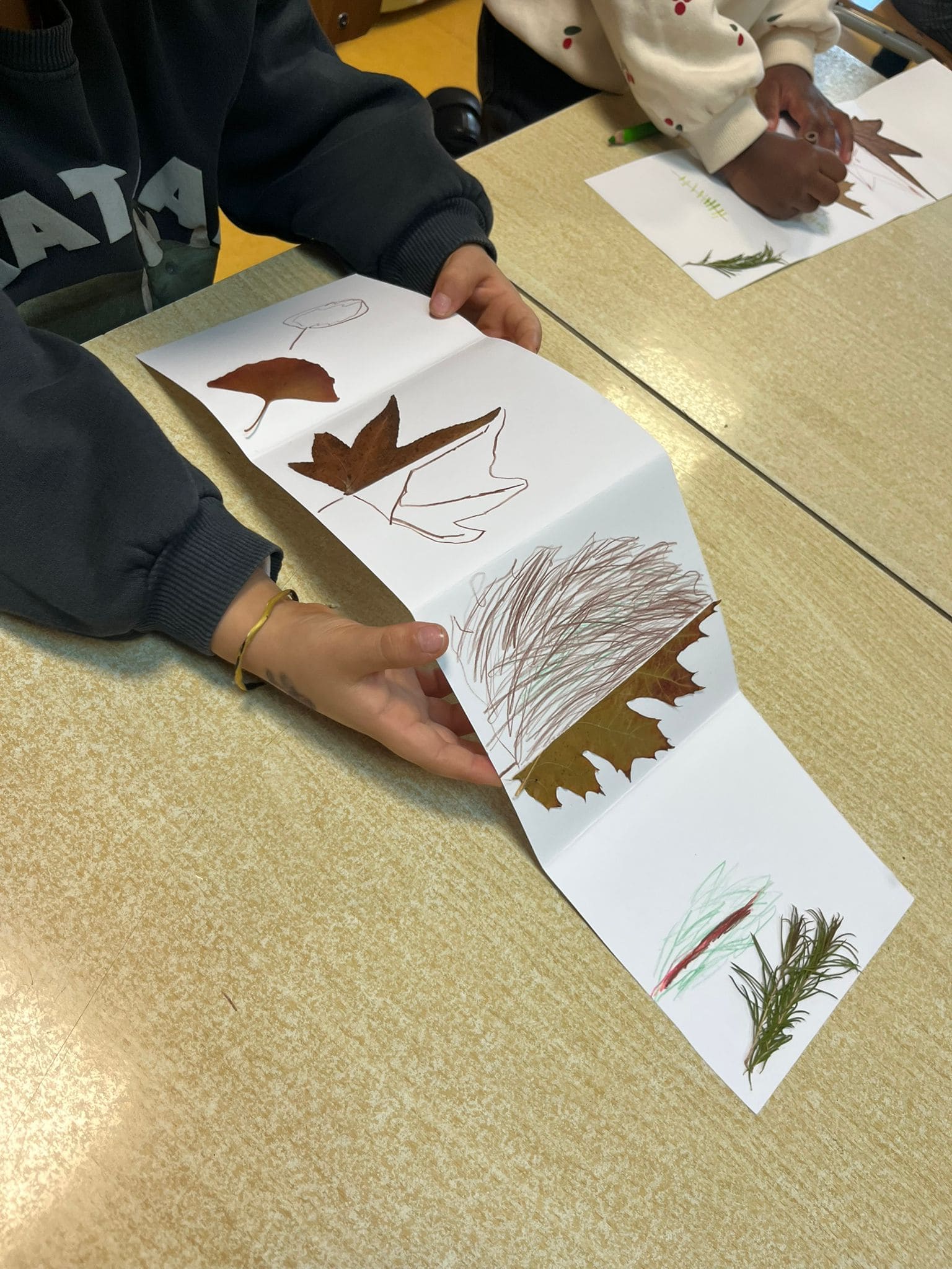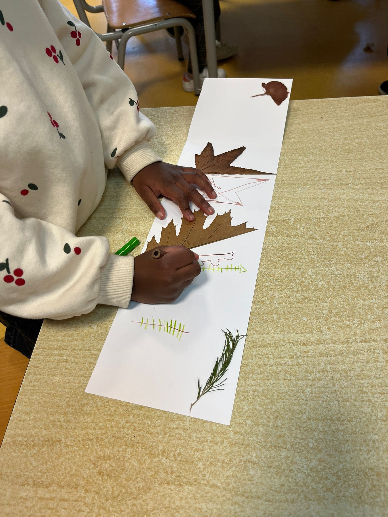 As folhas foram o ponto de partida para atividades nas disciplinas de Português, Matemática e Expressões Artísticas.